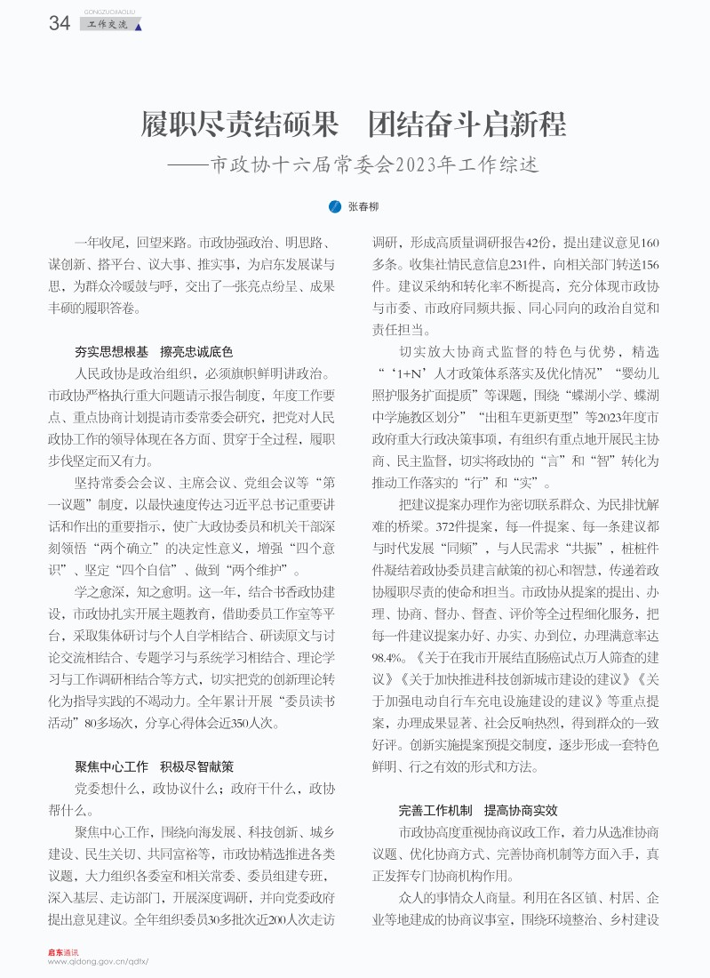 啟東通訊2024年第1期